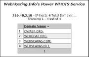 | 08:22, 13 November 2006 | Owasp-Info.jpg (file) | 19 KB | Querying webhosting.info WHOIS Service for 216.48.3.18, the address of www.owasp.org, produces three additional symbolic names we might not have been aware of. | 2 |